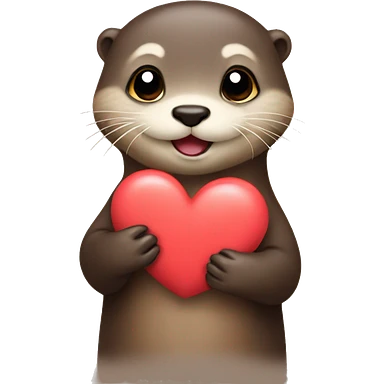 A happy and cute otter face with a Hawaiian flower tucked behind its ear, holding a heart. emoji