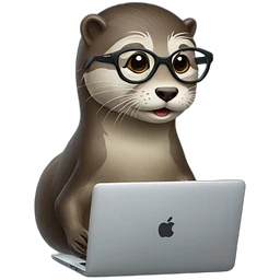 otter with glasses taping on a macbook against a pillow emoji