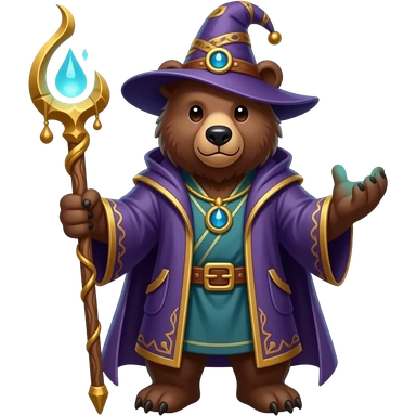 a young, beardless, black-haired wizard with a blue hat with a balloon drawn in front of the eyes holding a wand in one hand and a floating soccer ball in the other. He has a big smile and two white glowers. the cloak is tied with a yellow rope emoji