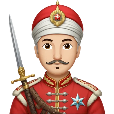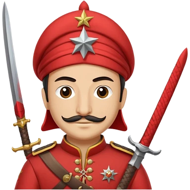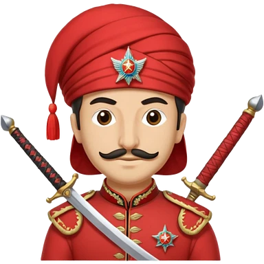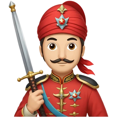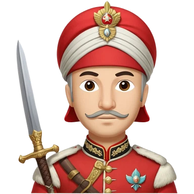 Ottoman janissary in red army dress holding a sword had a white cap emoji