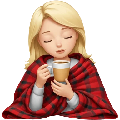 blonde girl inside a blanket sipping coffee eyes closed emoji