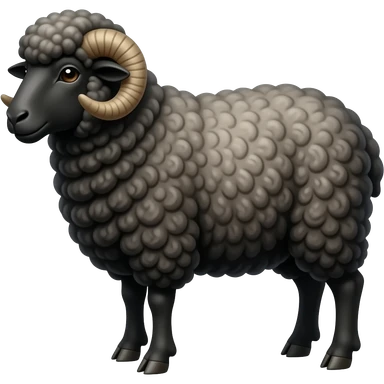 Oveja negra con el cuerpo entero de lado y cara graciosa emoji