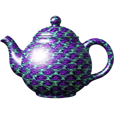 glitchy textured teapot all over it, just purple and green, black glitchy colors z-fighting on it everywhere no spotless areas. emoji