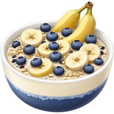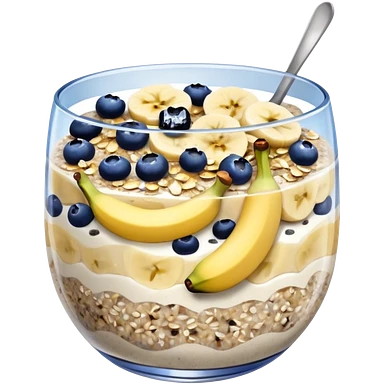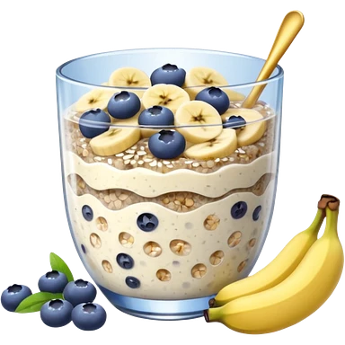 Overnight oats with banana slices,blueberries, honey, sky, chiaseeds emoji | AI Emoji Generator