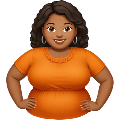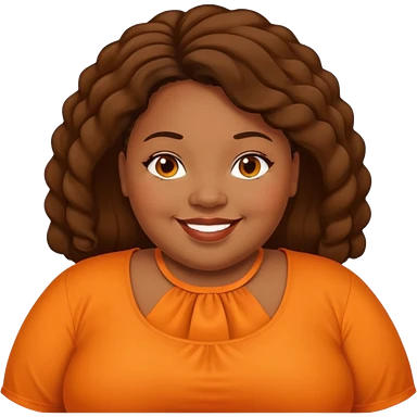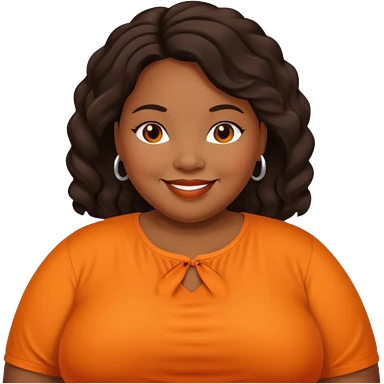 overweight black woman with organge blouse not smiling emoji | AI Emoji Generator