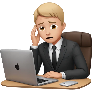 Create an emoji of a tired, frustrated entrepreneur sitting at a laptop. The character has dark circles under their eyes, looks exhausted, and has a disappointed or stressed expression. Their posture is slouched, and they seem stuck or overwhelmed, representing someone struggling to grow their business. Keep the design simple and expressive. emoji