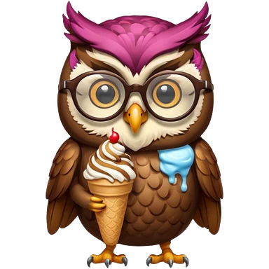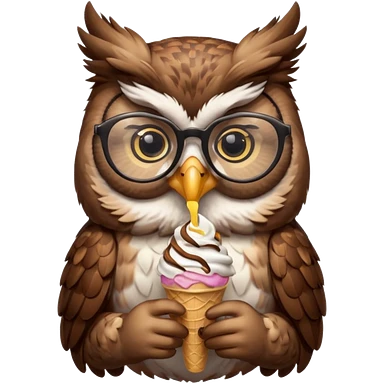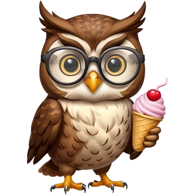 owl wearing glasses eating ice cream emoji | AI Emoji Generator