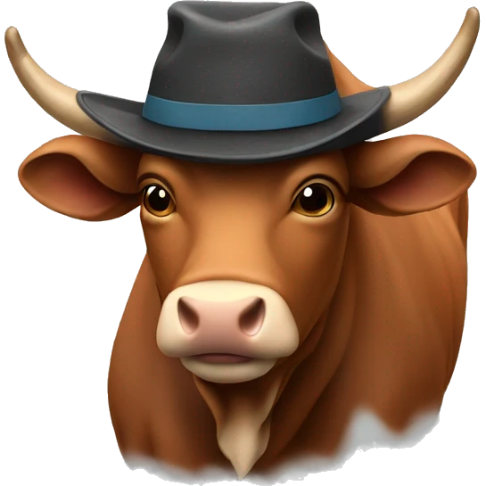 Cinematic Comical Domestic Ox Portrait Emoji, Head tilted dramatically with an exaggeratedly amused expression, featuring a striking, glossy hide with boldly curved horns and wide, expressive eyes brimming with playful disbelief, Simplified yet hilariously expressive features, highly detailed, glowing with a slightly sassy earthy glow, high shine, dramatic yet playful, stylized with an air of cheeky rural mischief, soft glowing outline, capturing the essence of a spirited and over-the-top ox that looks ready to charge its way into internet fame instantly! emoji