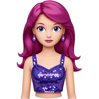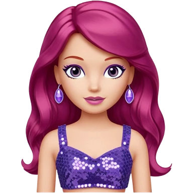 P.J. from Barbie & Friends with indigo eyes, long red hair, lilac sequin crop top emoji