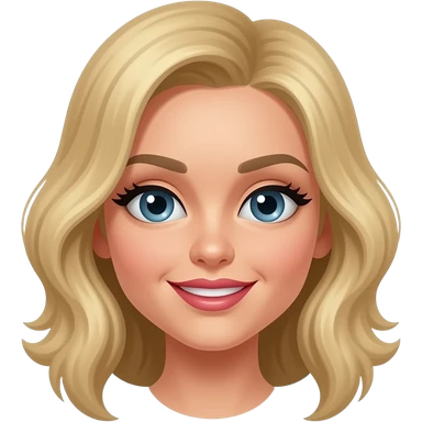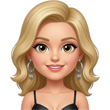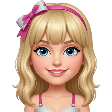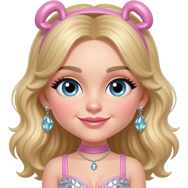 P!nk with blue eyes, blonde faux hawk hair with pink highlights, pink eyeshadow and lipstick, pink metallic high neck dress, pink earrings emoji