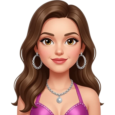 P!nk with blue eyes, pink hair, orchid metallic shirt, hot pink metallic baggy pants, silver necklace emoji