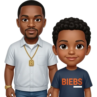 P Diddy with boy with Biebs shirt emoji