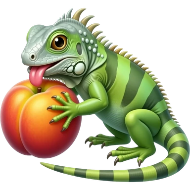an iguana licking a peach emoji