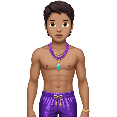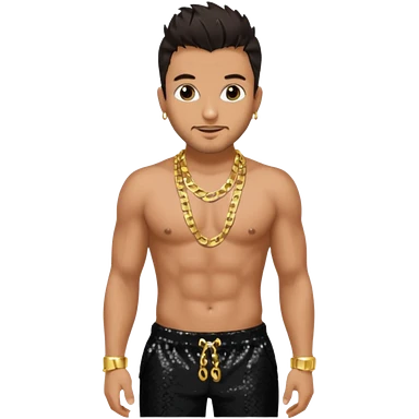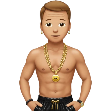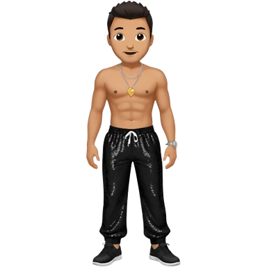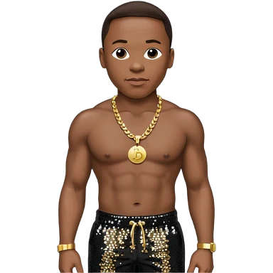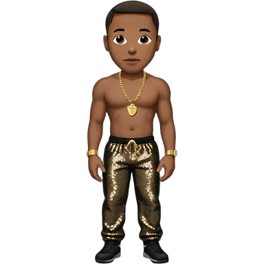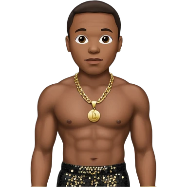 P Diddy with dark brown hair, dark red sequin baggy pants, shirtless with necklace emoji | AI Emoji Generator