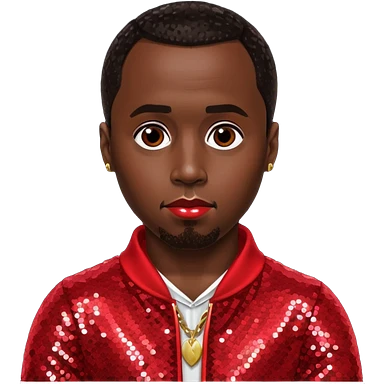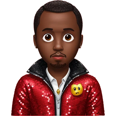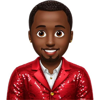 P. Diddy with dark brown hair, red sequin outfit emoji