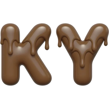 👉 TWO👉 "letters K and Y made of chocolate texture, rich brown color, 3D glossy, melted chocolate style, smooth rounded shapes, cute cartoon style, isolated on white background, high detail" emoji