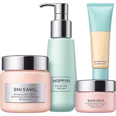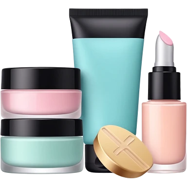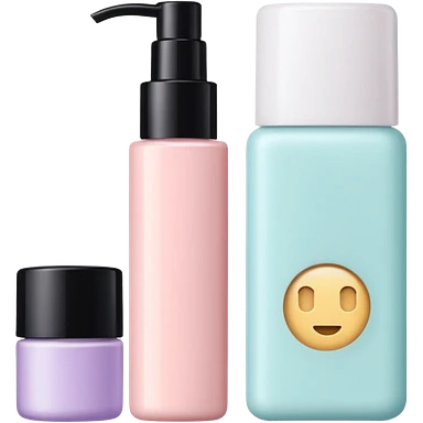 Productos de skincare aesthetic y maquillaje emoji