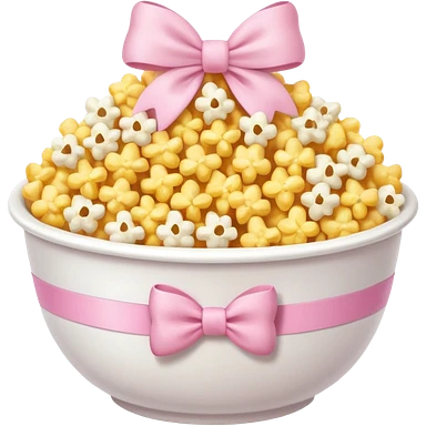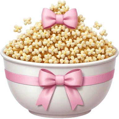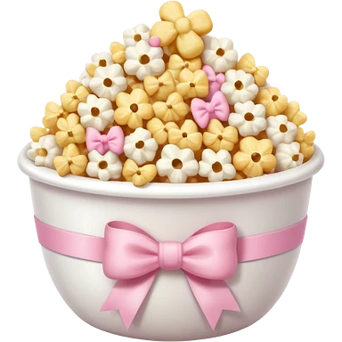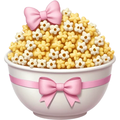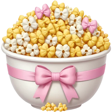 popcorn soft texture in white bowl with pink pastel bow not on top emoji