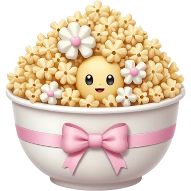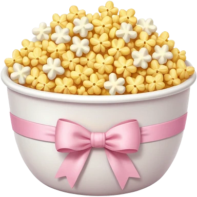 popcorn soft texture in white bowl with pink pastel bow emoji