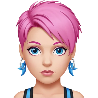 P!nk Singer with pink hair, blue eyes emoji