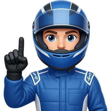 f1 racer posing with blue costume, using blue costume and helmet, make word p with hand emoji