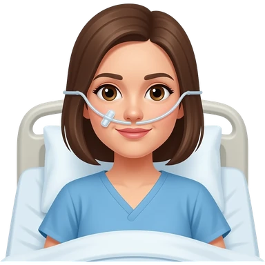 paciente mujer con en habitación de hospital con canula nasal y bata azul estilo apple emoji emoji