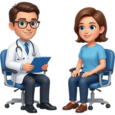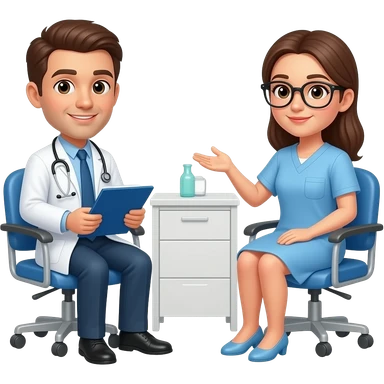 un medico y su paciente, sentados en una mesa emoji