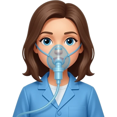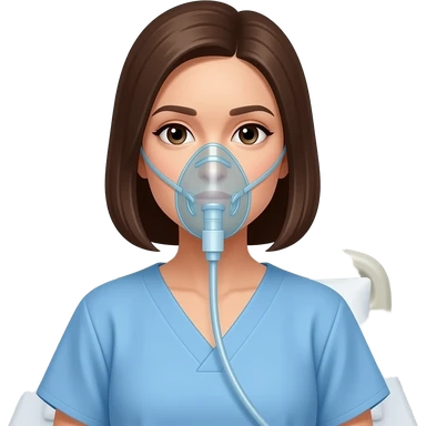 paciente mujer con inhalador oxigeno y bata azul estilo apple emoji emoji
