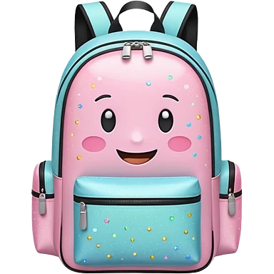 A cheerful emoji-style travel backpack with small sparkles around it, symbolizing excitement for a new journey. Simple flat style, pastel tones, white background. emoji | AI Emoji Generator