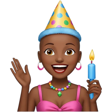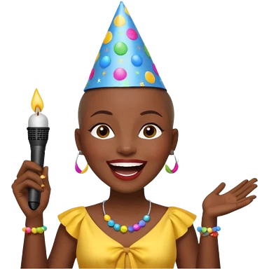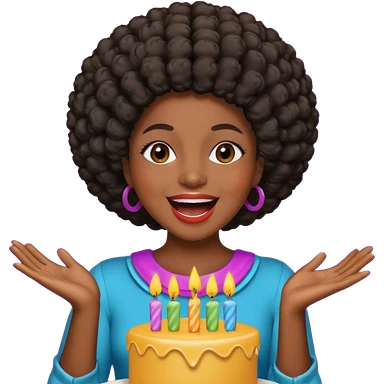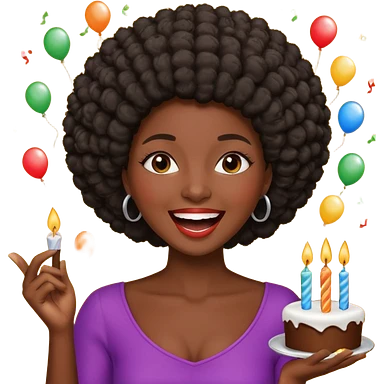 Classic mustang dark women with short Afro sing happy birthday emoji