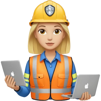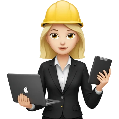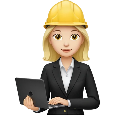 сделай специалиста по охране труда, светловолосую девушку с ноутбуком в руках в желтой каске и черном брючном костюме без шильдиков на касках emoji