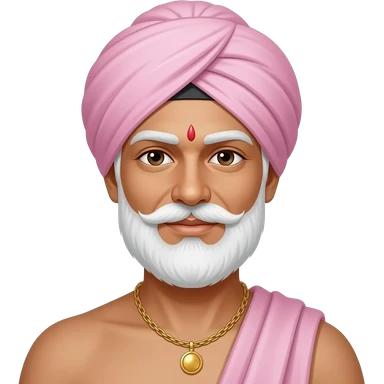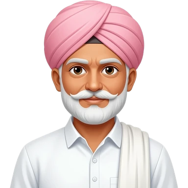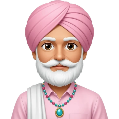 Pagdi lite pink,beard white,color aur whitening,remove shoulder cloth and necklaces kurta white kurte me buttons aur colar nahi honi chahiye aur beard badi ho emoji | AI Emoji Generator