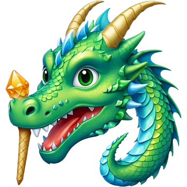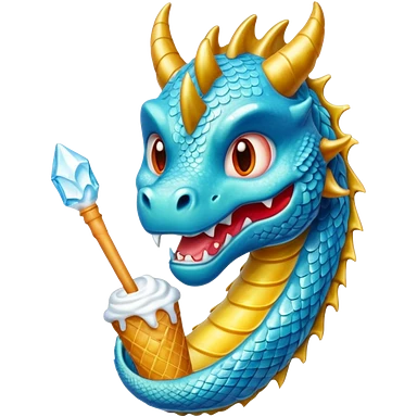 Un dragon pailleté brillant qui mange une glace emoji
