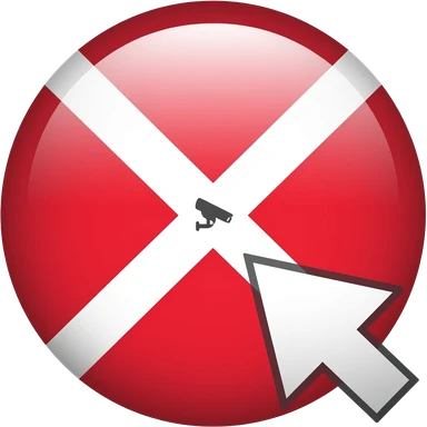 Red filled circle with white X and arrow end point s, CCTV in the centre emoji