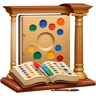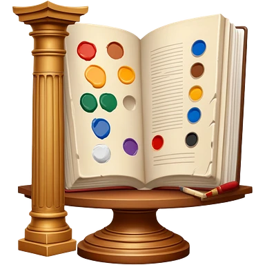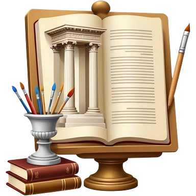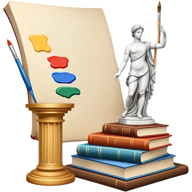 An icon featuring a paint palette, a sculpture, and a book, symbolizing the study of culture and art. The design includes a classical column and a canvas, representing art history and cultural exploration. Transparent background highlights the connection between creativity and history. emoji