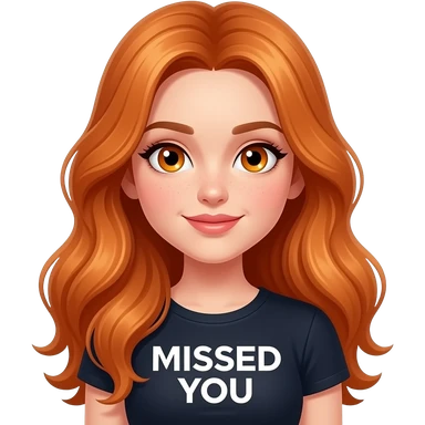 sexy girl with long ginger hair and ginger eyes a top with MISSED YOU written on it emoji