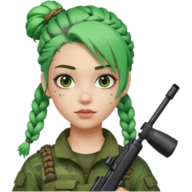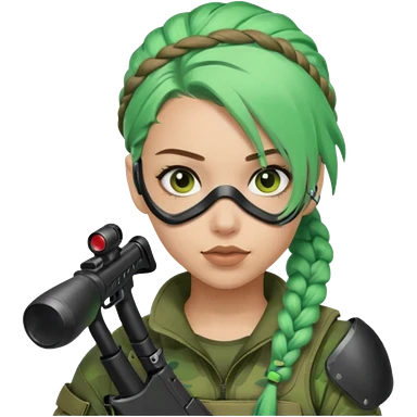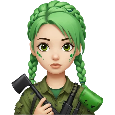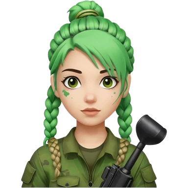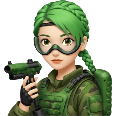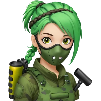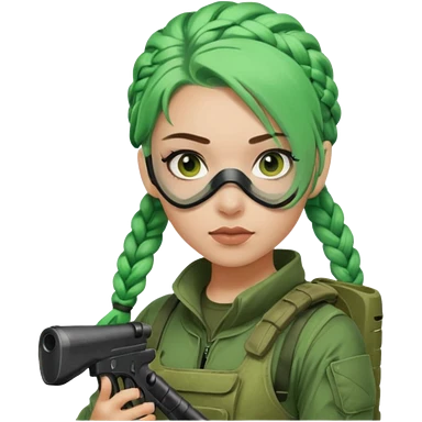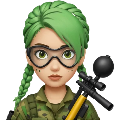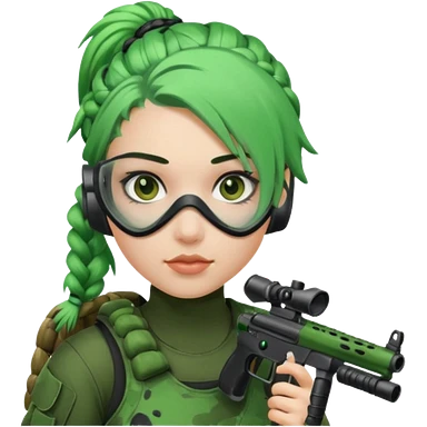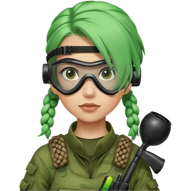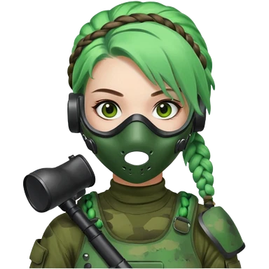 paintball player face girl braided green hair emoji