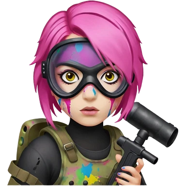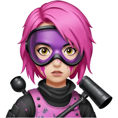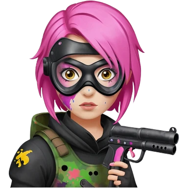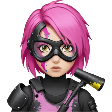 paintball player face girl pink hair emoji
