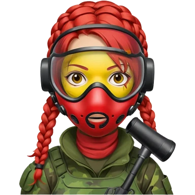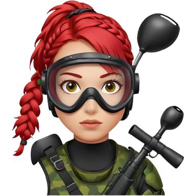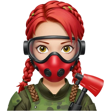 paintball player face girl braided red hair emoji