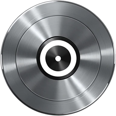 Chrome vinyl record emoji, silver metallic finish, iOS emoji style, reflective surface, minimal design, centered, smooth gradients, clean white background emoji