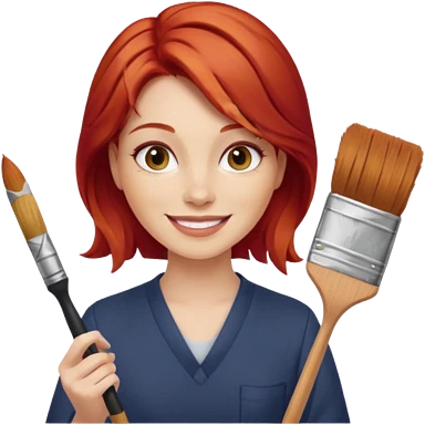 Painting Hold. Women painting smilling Cheveux roux emoji