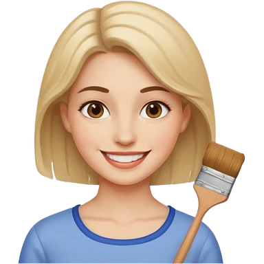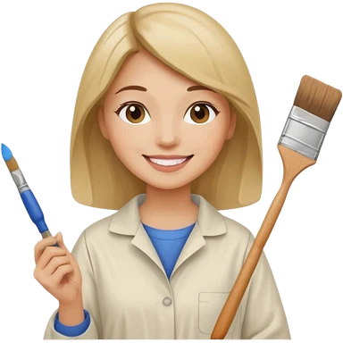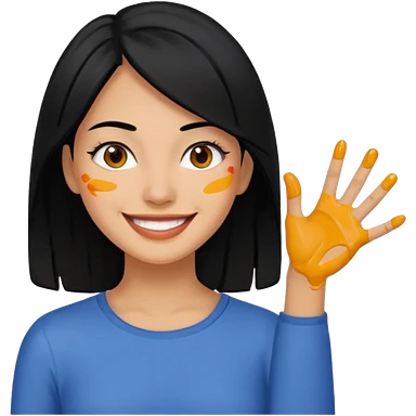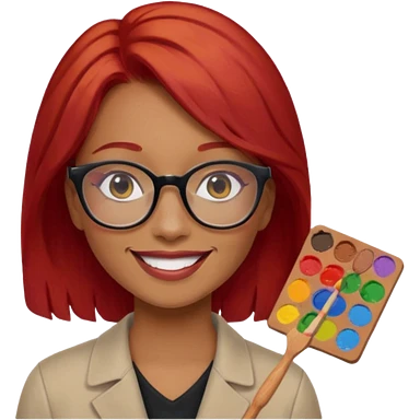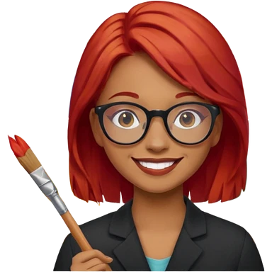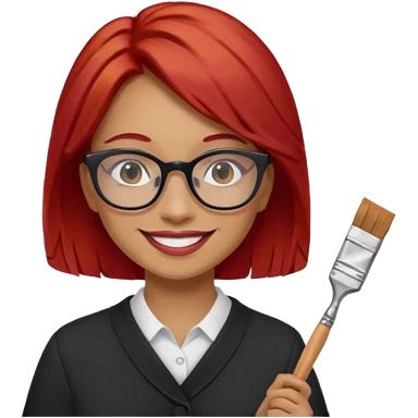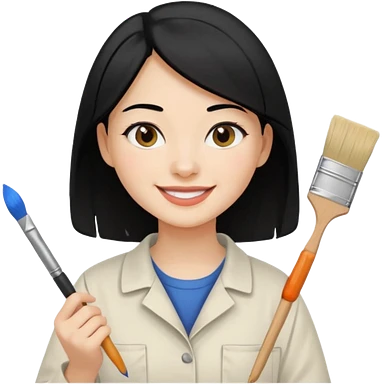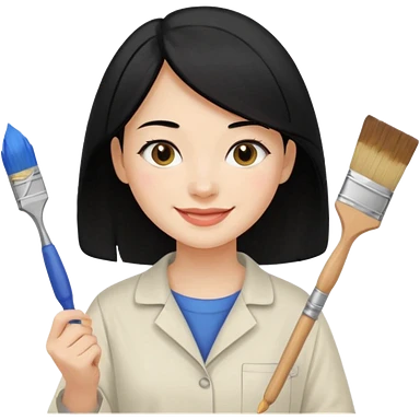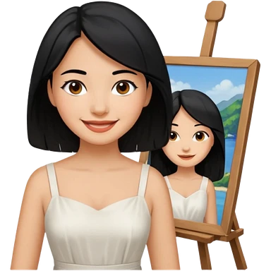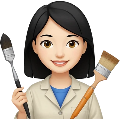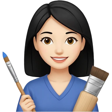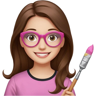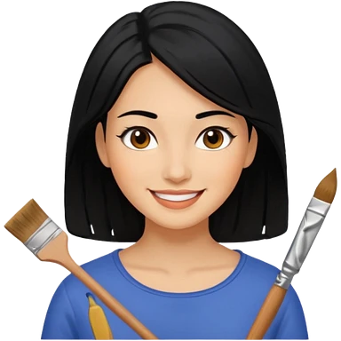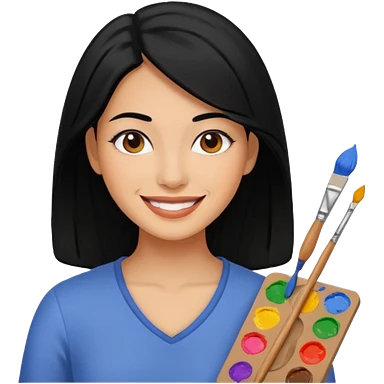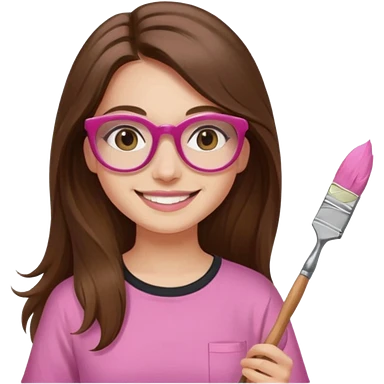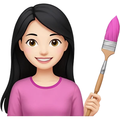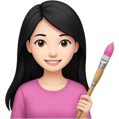 Painting women. smilling Long black hair, lunette peinture top pink, pinceau emoji | AI Emoji Generator