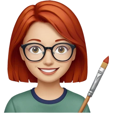 Painting Hold. Women painting smilling Cheveux roux lunette emoji