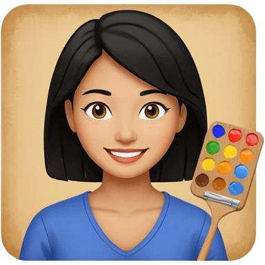 Painting women. smilling Long black hair, lunette peinture top pink, pinceau with is black cat emoji | AI Emoji Generator