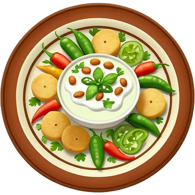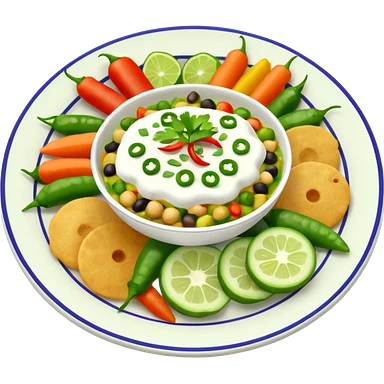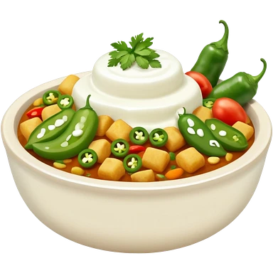 Pakistani dish named chaat its has yougurt and green chilli and vegetables in it emoji | AI Emoji Generator