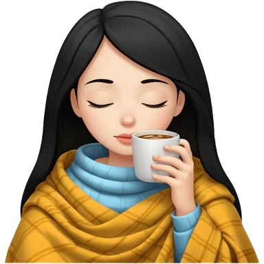 Black hair girl inside a blanket sipping coffee eyes closed emoji