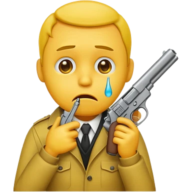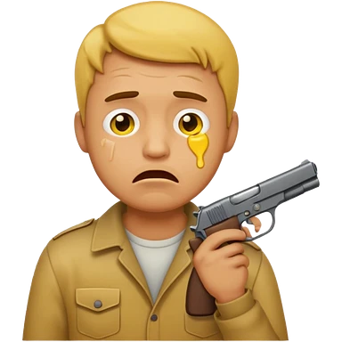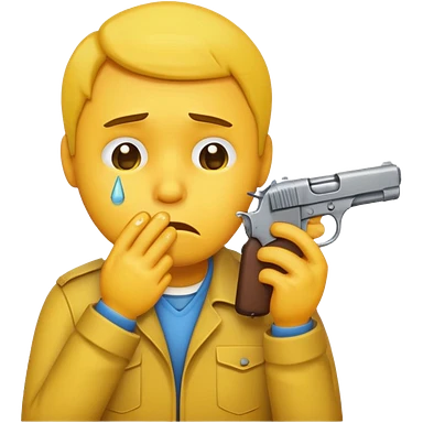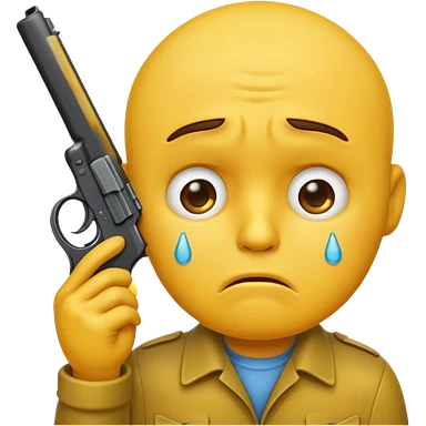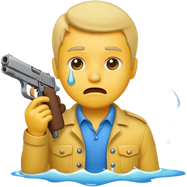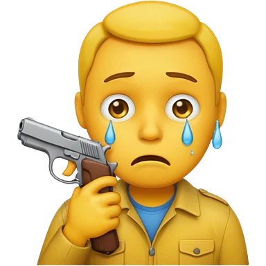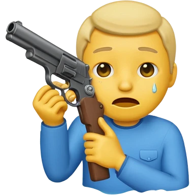 Make a yellow emoji of a guy holding a gun and the guns barrel is in his mouth while crying blue water emoji