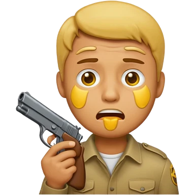 Make a yellow emoji of a guy holding a gun in his mouth while crying emoji