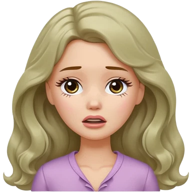 A white Barbie girl with long dark brown wavy hair in pale olive clothes crying emoji