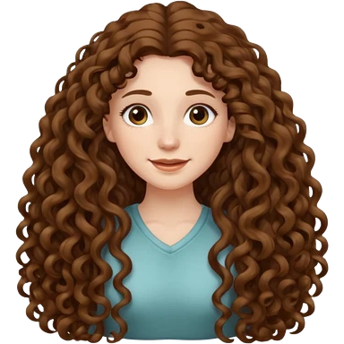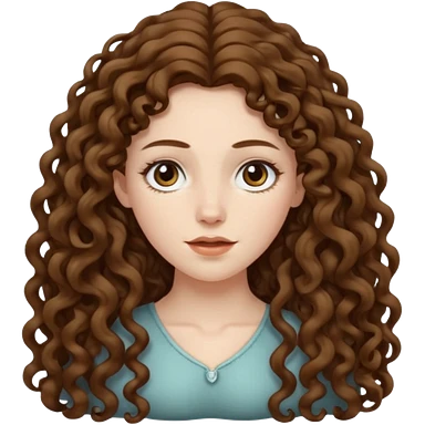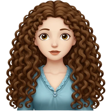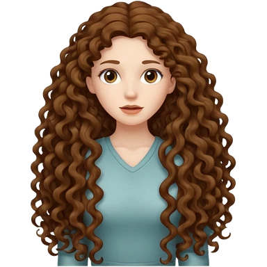pale woman with brown curly very long hair, middle part. the hair is very very very very very very long, so long, you can't see the ends. the hair is very heavy and goes down to her feet emoji